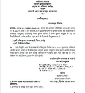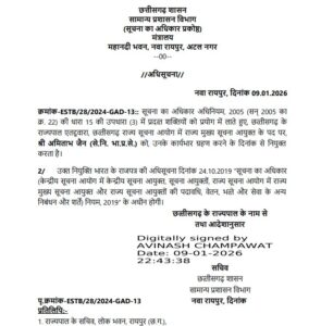 रायपुर। छत्तीसगढ़ शासन ने राज्य सूचना आयोग में अहम नियुक्तियां की हैं। पूर्व मुख्य सचिव अमिताभ जैन को मुख्य सूचना आयुक्त के पद पर नियुक्त किया है।