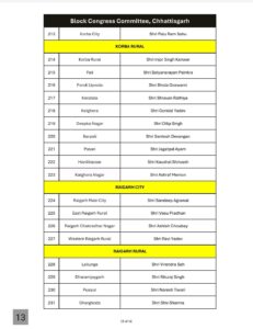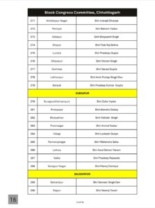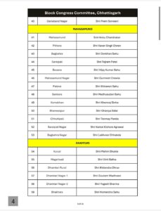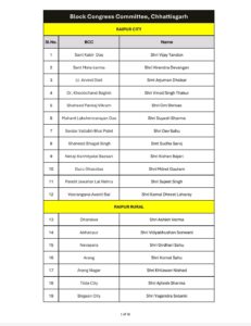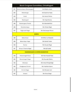 रायपुर। छत्तीसगढ़ प्रदेश कांग्रेस ने लम्बी कवायद और मंथन के बाद छत्तीसगढ़ के 307 ब्लॉक के लिए अध्यक्षों की सूची जारी कर दी है।